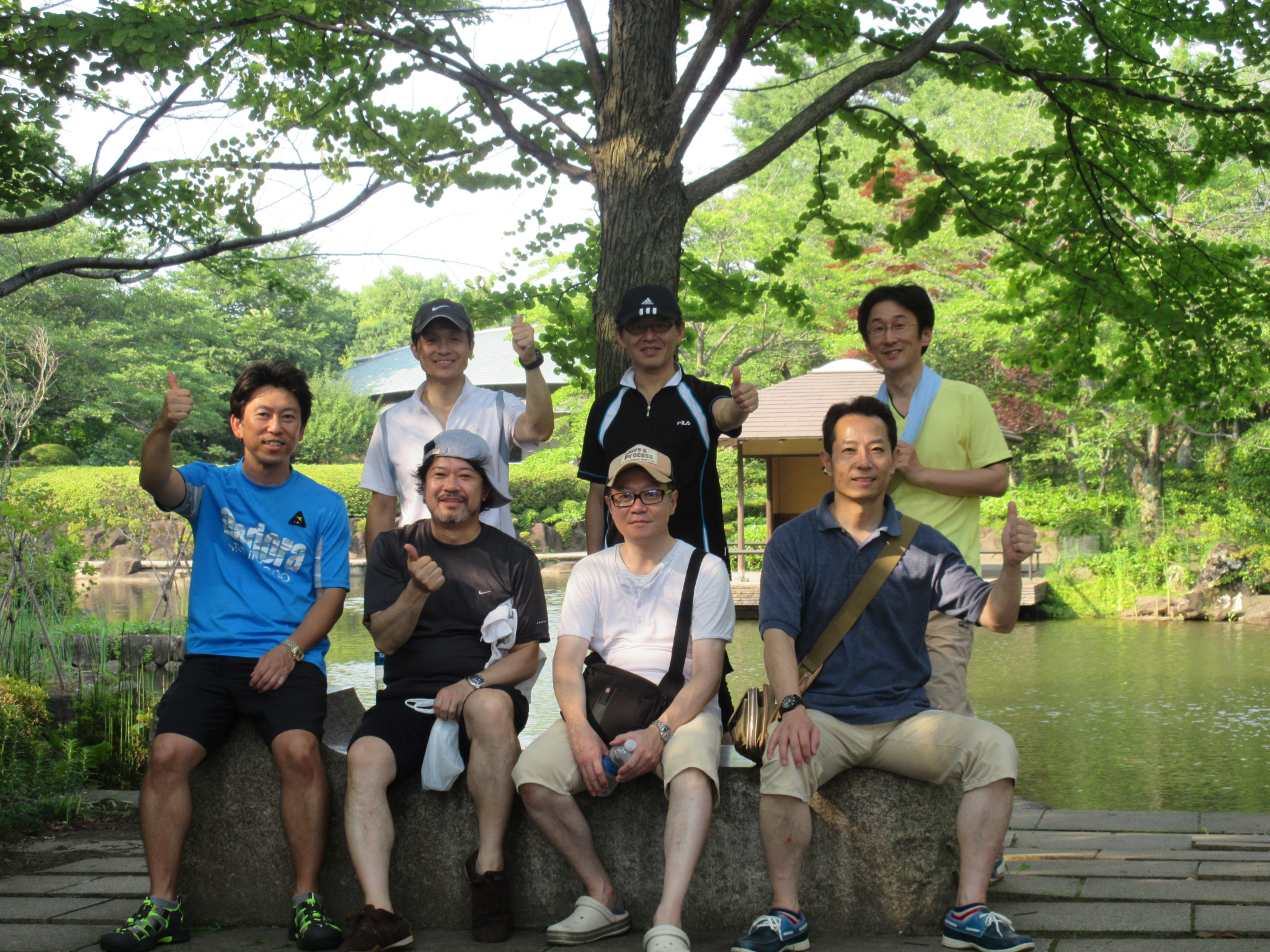 日本庭園前で集合写真。パチリ。