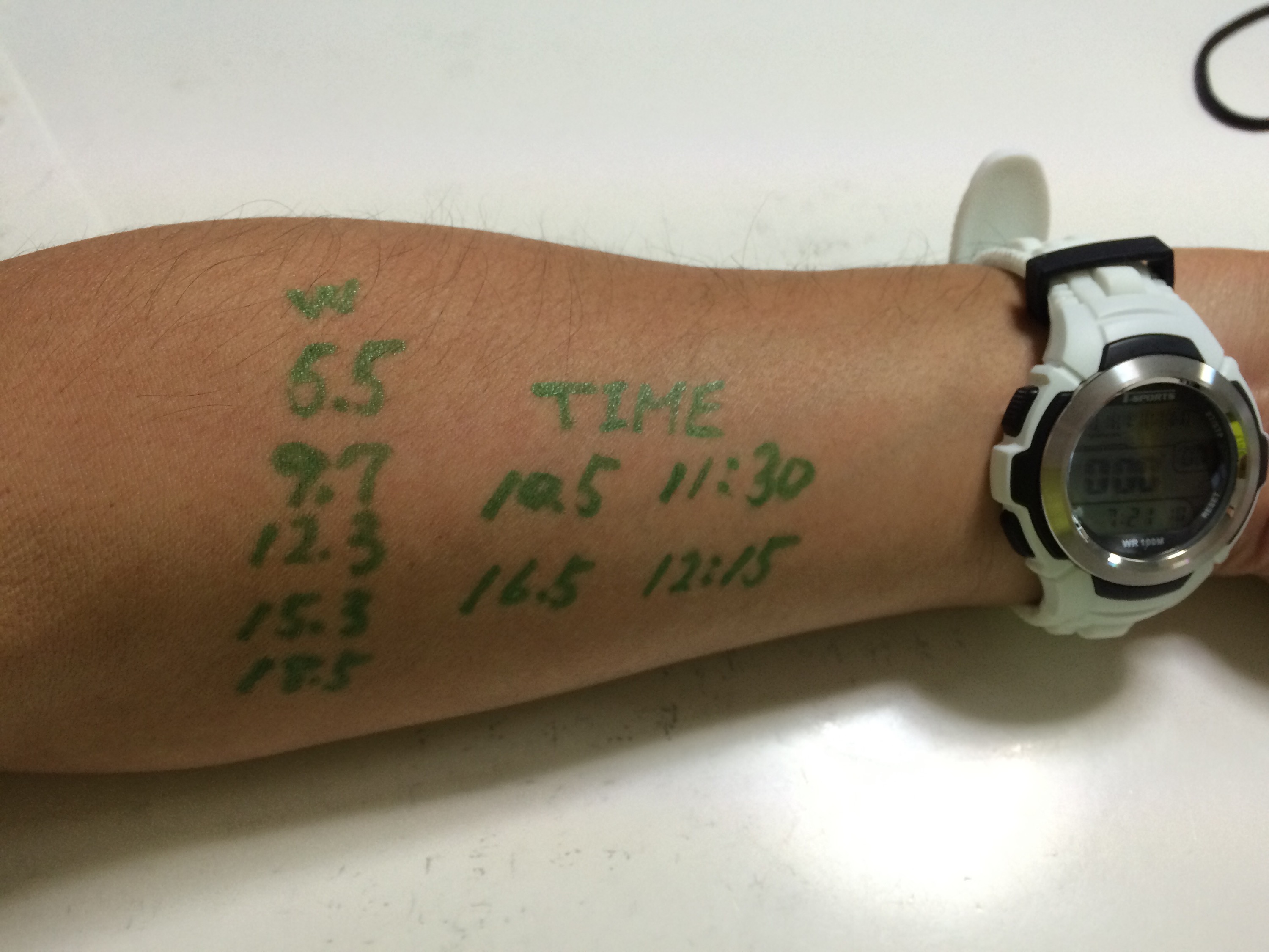 げんを担いで、リレーマラソンと同じウェアではりしました。右手のサポーターは今回初です。
