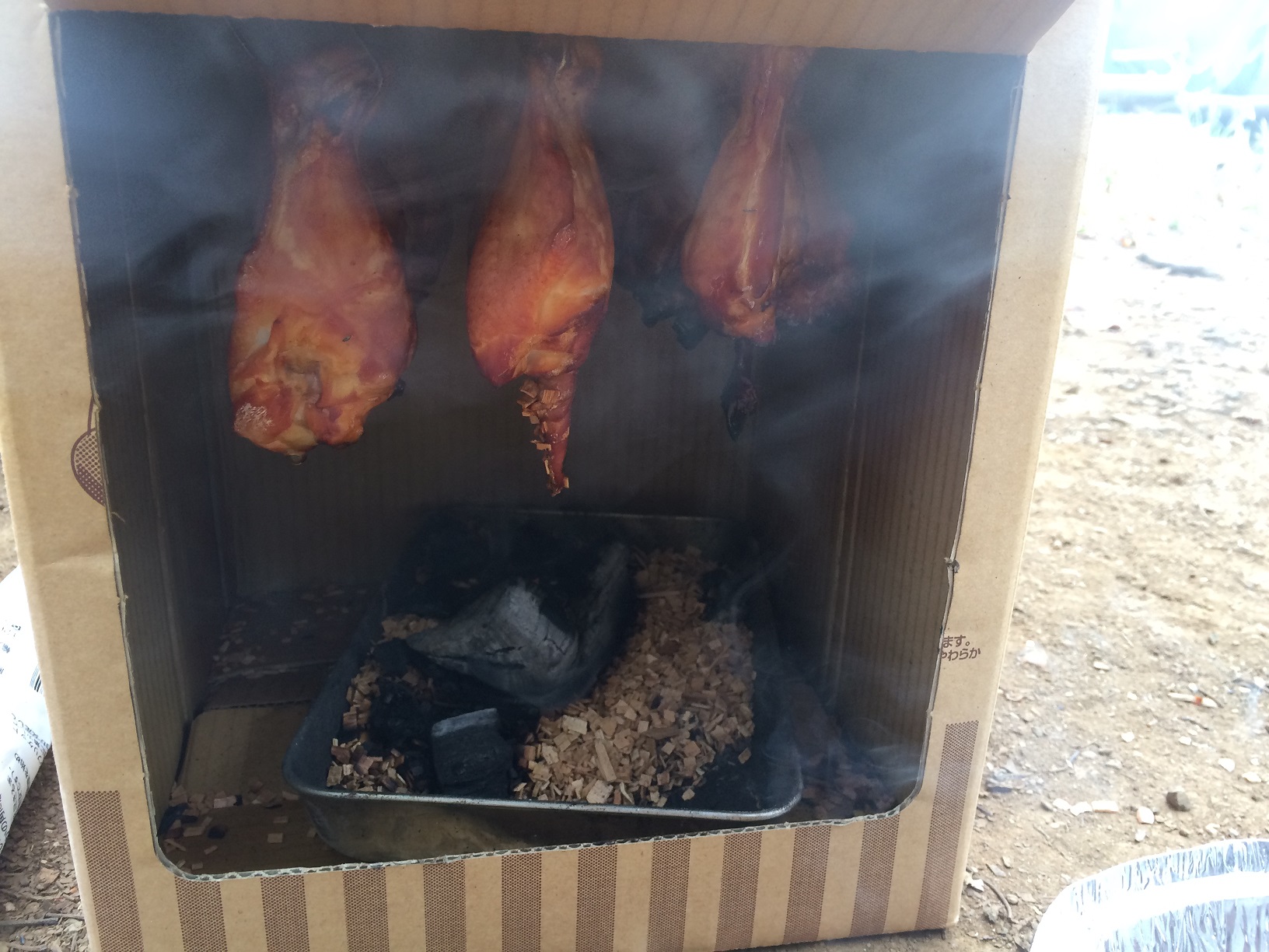 ちなみにゴルフ三昧さんさんの左側にあるダンボールがスモークハウスで燻製を作っています。