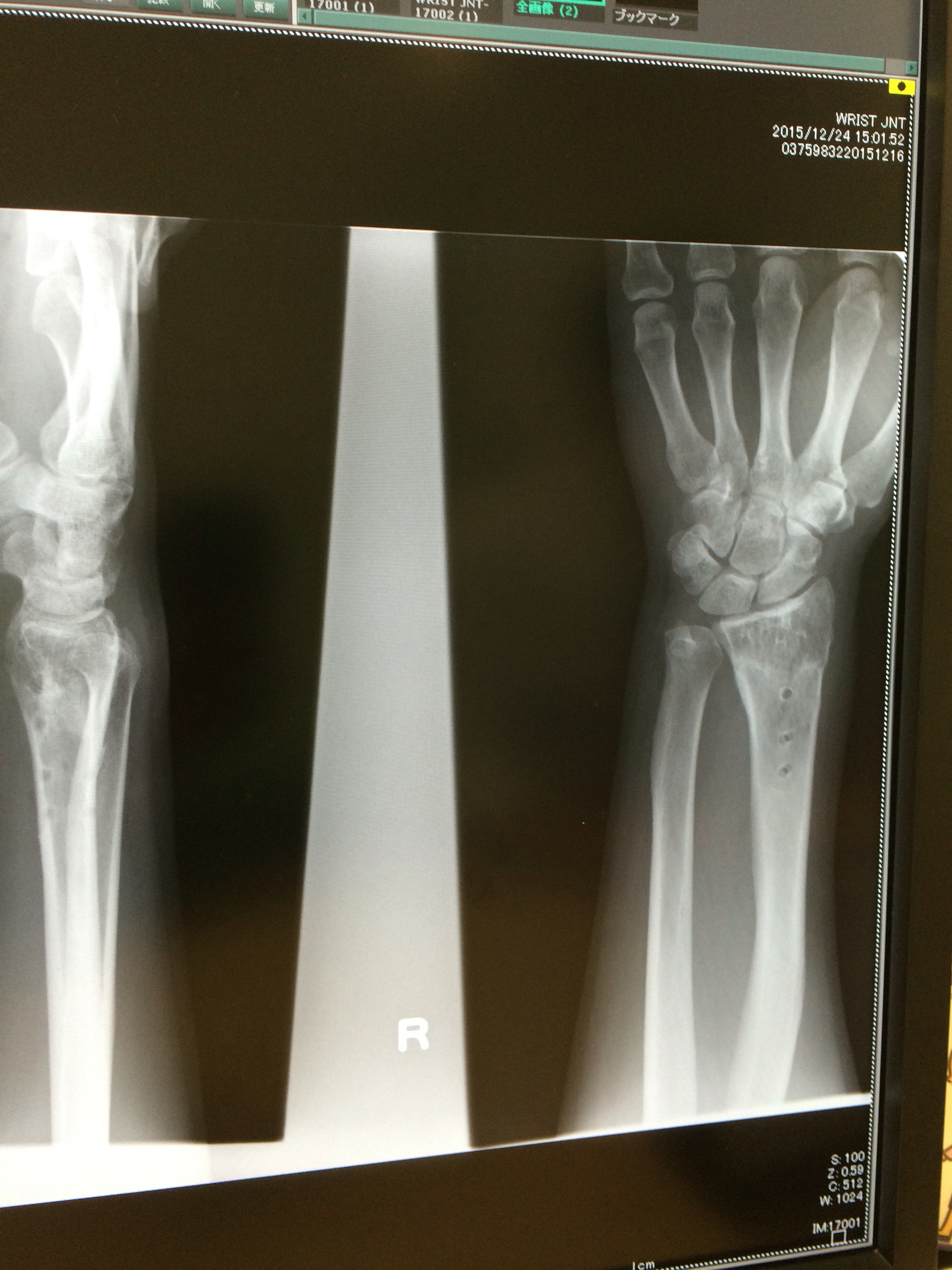 (教頭さん)プレートとネジを外したあとのレントゲン写真です。
